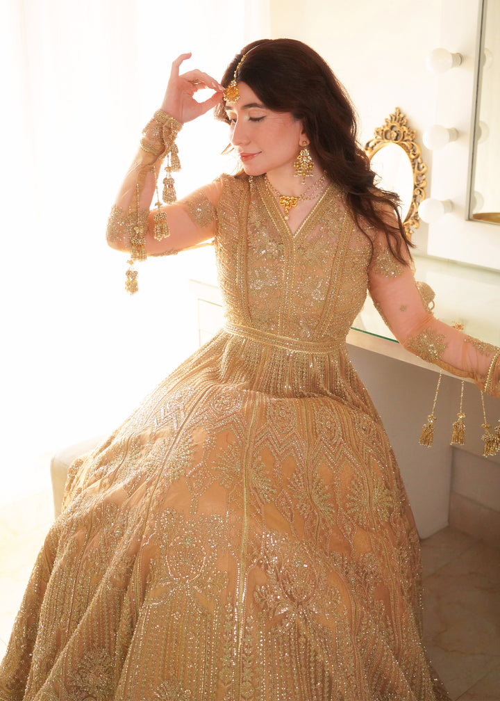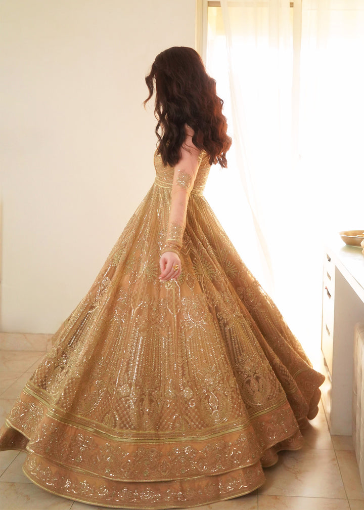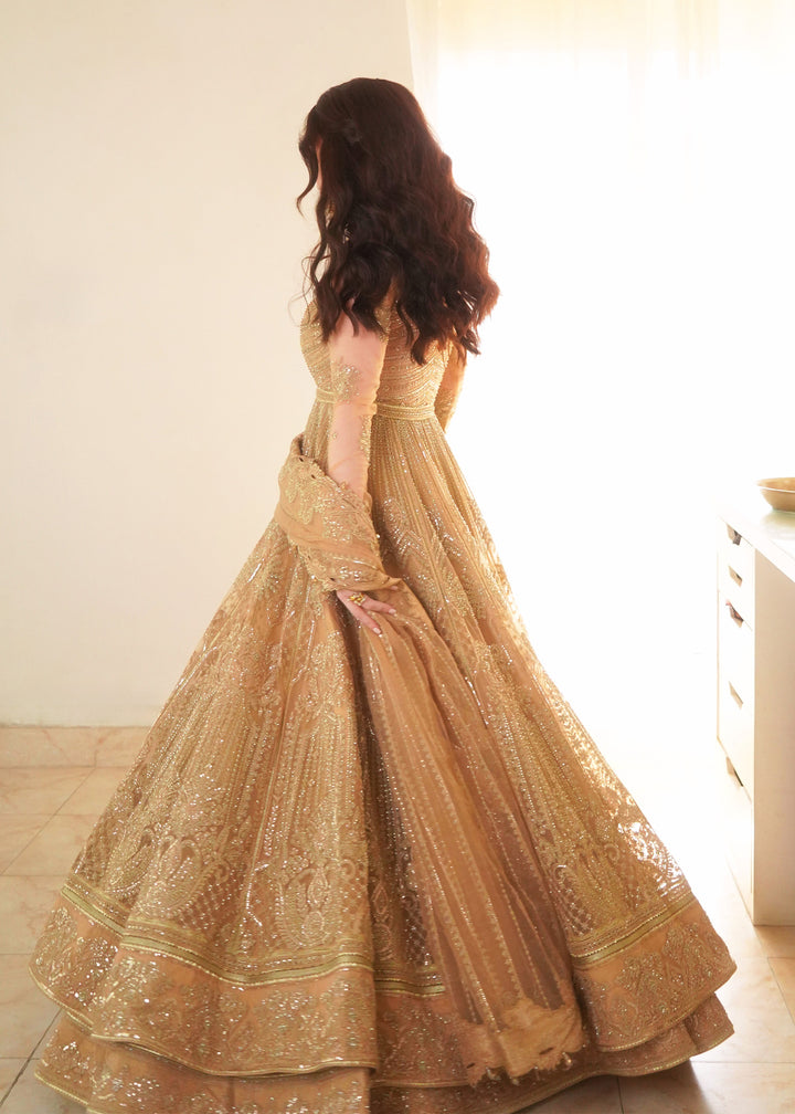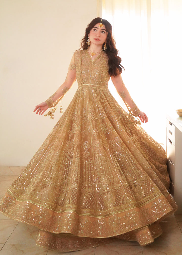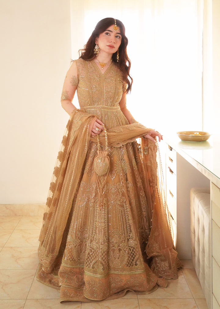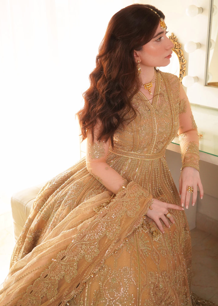 Bijou is a masterpiece of elegance and grandeur. The ensemble features an embroidered net shirt with delicate sleeves, paired with a lace-detailed net peshwas and a regal jamawar lehenga. An embroidered net dupatta completes the look, creating a timeless silhouette that is both graceful and sophisticated. Perfect for weddings and special occasions, Bijou embodies refined luxury