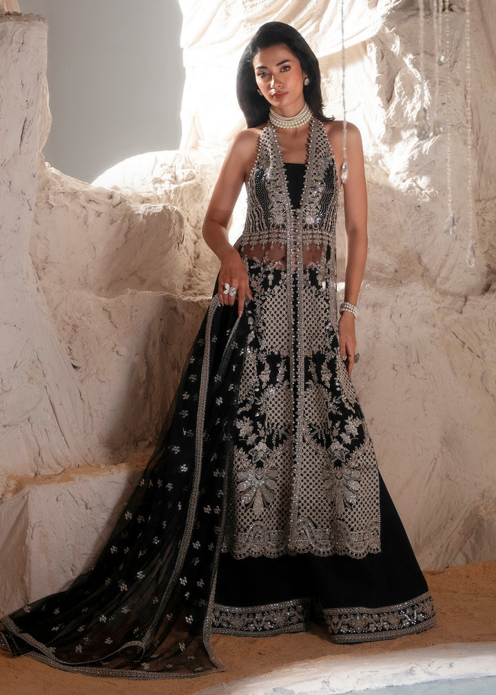 The Darcy Suit captures modern sophistication with a touch of timeless elegance. Crafted from delicate net fabric, the suit and dupatta are adorned with intricate cutdana embroidery, while sleek raw silk trousers bring structure and refinement to the look.
